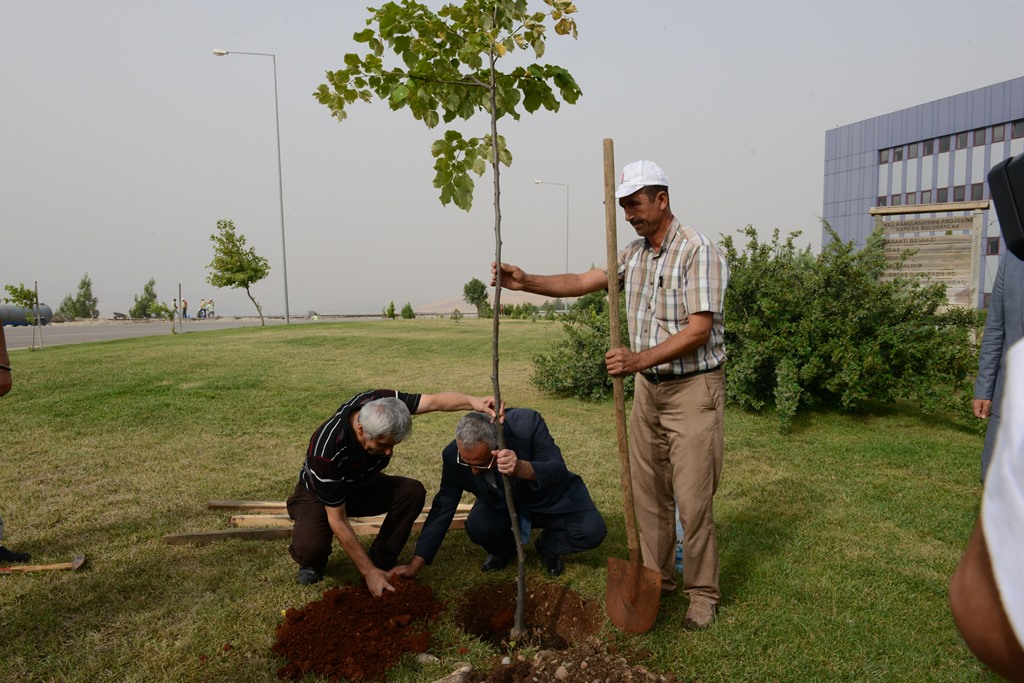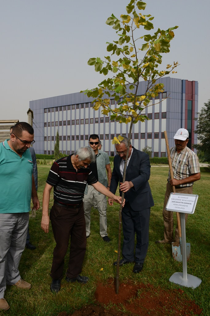 Üniversitemiz hastanesinde beyin ameliyatı olan Bahaettin Karakoç’un tedavisinin devam ettiğini hatırlatan Rektör Prof. Dr. Durmuş Deveci “Kahraman Şehrimizin yetiştirdiği büyük değerlerden biri olan Bahaettin Karakoç adına böyle bir etkinlikte yer almaktan onur duydum. İnşallah kendisi de en kısa sürede eski sağlığına kavuşacak, oluşturduğumuz bu bahçeye bir ıhlamur fidanı da onunla birlikte dikmek istiyoruz ıhlamurlar çiçek açmadan.” diye konuştu.