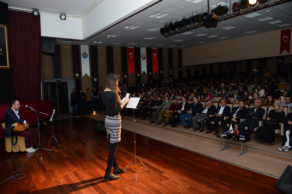 KSÜ Cahit Zarifoğlu Konferans Salonunda gerçekleştirilen şiir dinletisi programının açılış konuşmasını Türk Dili ve Edebiyatı Topluluğu Danışmanı Yrd. Doç. Dr. İbrahim Erşahin yaparken, program kapsamında Ahmet Yesevi ’den Cahit Zarifoğlu’na Türk Edebiyatının önemli şairlerinin hayatları ve eserleri hakkında kısa bilgiler verildi. Usta şairlerin öne çıkan şiirleri okunurken, halk şairlerinin eserlerinden bestelenen halk türküleri bağlama eşliğinde seslendirildi.