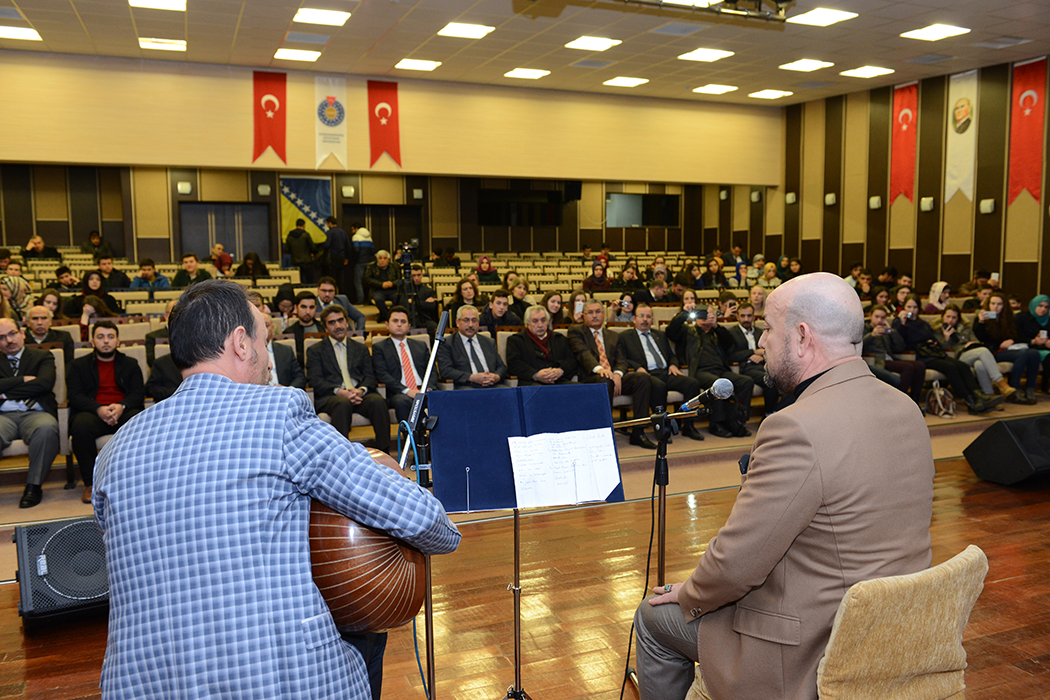 Cahit Zarifoğlu Konferans Salonu’nda düzenlenen programa, Bosna Hersek’ten gelen bir grup öğrenci ile birlikte Üniversitemiz Rektörü Prof. Dr. Durmuş Deveci, Rektör Yardımcıları Prof. Dr. Fatih Kıllı, Prof. Dr. Ramazan Güneşaçar, Prof. Dr. İsmail Bakan İktisadi ve İdari Bilimler Fakültesi öğretim görevlisi İsmail Göktürk, Bosna Gönül Elçisi Osman Nalbant ve çok sayıda öğrenci katıldı.