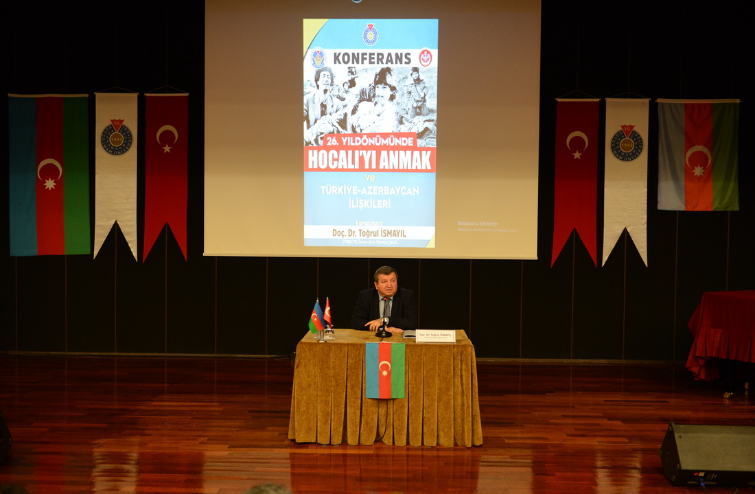 Belgesel gösteriminin ardından Türkiye Odalar ve Borsalar Birliği Ekonomi ve Teknoloji Üniversitesi Uluslararası İlişkiler Bölümü Öğretim Üyesi Doç. Dr. Toğrul İsmayıl “26. Yıldönümünde Hocalı’yı Anlamak ve Türkiye-Azerbaycan İlişkileri” konulu konferans sunumunu gerçekleştirdi.