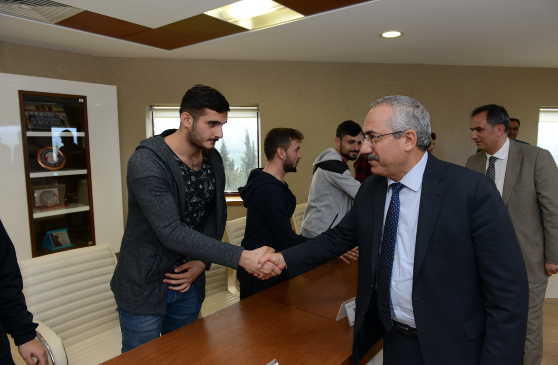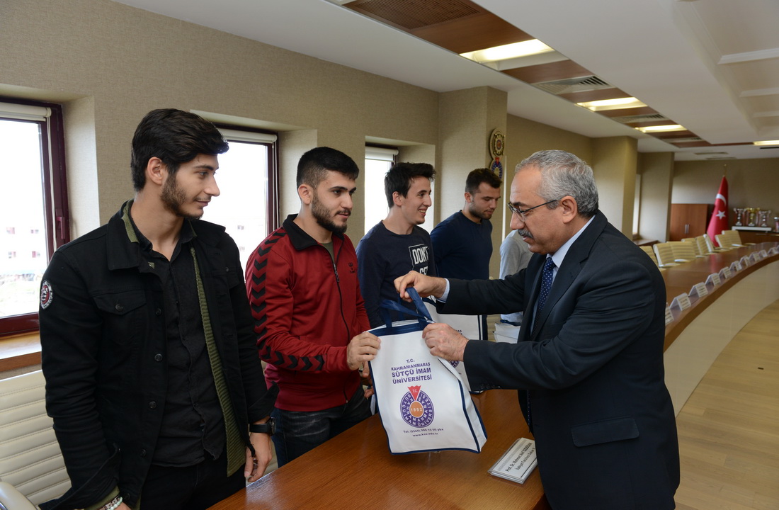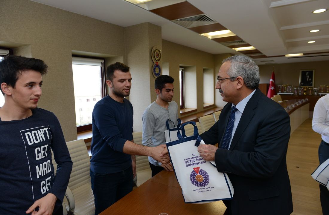 Rektör Deveci son 3 yılda katıldığı turnuvalardan 7 kupa elde eden KSÜ Futbol Takımını Rektörlük Makamında ağırlayarak bir süre görüştü. Sporda ve özellikle futbol alanında alınan başarılı sonuçların kendilerini ziyadesiyle memnun ettiğini ve spora verilen desteğin üniversite imkânları doğrultusunda artarak devam edeceğini ifade eden Rektör Deveci, “Başarı asla tesadüf değil. Başarı disiplinli ve çok çalışmanın ürünüdür. Bu anlayışla yönetime geldiğimiz ilk günden itibaren öğrenci odaklı projeleri destekledik. Öğrencilerimiz ve çalışma arkadaşlarımızın özverili çalışmaları sonucunda verilen emeklerin karşılığını almaya başladık. Bireysel ve takım sporlarında üniversitemiz, tarihinin en verimli dönemini geçirmektedir. Bizlere bu gururu yaşatan, bu sonuçların elde edilmesi için her kademede emek veren başta futbol antrenörümüz Bülent Okyaz hocamız olmak üzere bütün çalışanlarımıza teşekkürlerimi sunuyorum.” dedi.