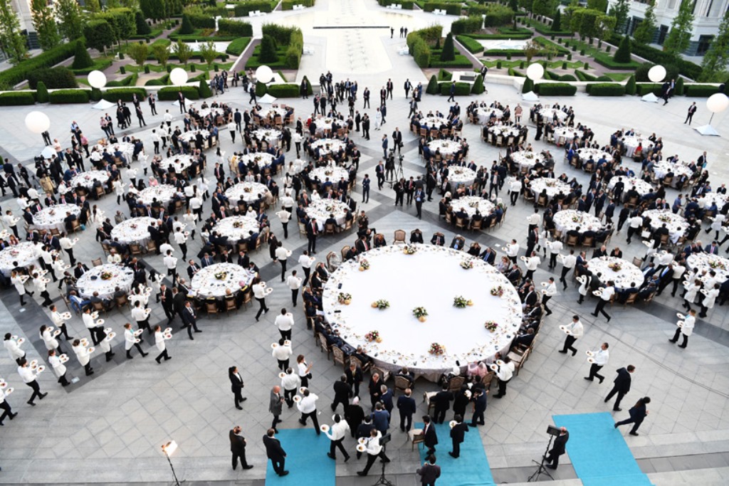 Cumhurbaşkanı Erdoğan, Cumhurbaşkanlığı Göreve Başlama Töreni’ne katılan devlet ve hükûmet başkanları, meclis başkanları, bakanlar, özel temsilciler ve uluslararası örgüt yöneticileri ile büyükelçiler onuruna Cumhurbaşkanlığı Külliyesinde bir akşam yemeği de verdi.