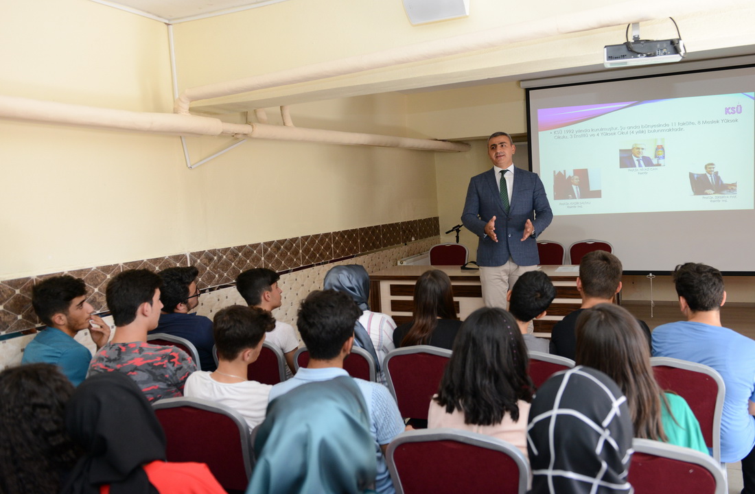 Lise öğrencilerinin vizyonlarını geliştirmek, hedef belirlemelerine yardımcı olmak ve akademik geleceklerine yön vermek amacıyla KSÜ Rektörlüğü ve Kahramanmaraş İl Milli Eğitim Müdürlüğü işbirliğinde gerçekleştirilen proje kapsamında 19 lisede yeni eğitim-öğretim döneminin ilk dersini KSÜ’de görevli akademisyenler gerçekleştirdi.