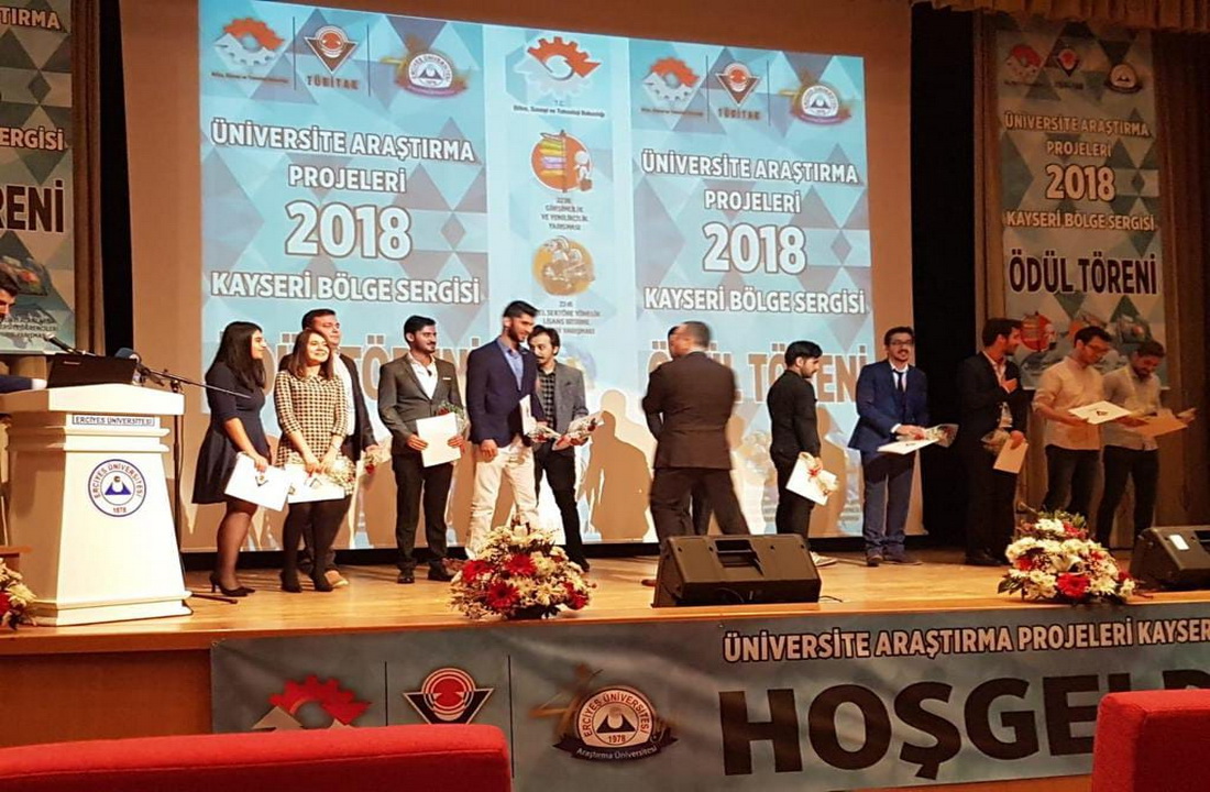 Türkiye Bilimsel ve Teknolojik Araştırma Kurumu (TÜBİTAK) Bilim İnsanı Destek Programları Başkanlığınca bu yıl altıncısı düzenlenen ve ülkemizin ihtiyaç duyduğu öncelikli araştırma alanlarında üniversite öğrencilerini çalışmalar yapmaya özendirmeyi hedefleyen 2238 Girişimcilik ve Yenilikçilik Yarışması Teknogirişim Kategorisi’nde Doç. Dr. Suat Çetiner danışmanlığında hazırlanan, Elektrik-Elektronik Mühendisliği Bölümü lisans öğrencisi Beytullah Göl ve Tekstil Mühendisliği Bölümü lisans öğrencisi Mert Can Korkmaz tarafından sunulan “Giyilebilir Tekstil Esaslı Elektroensefalografi (EEG) Görüntüleyen Akıllı Saç Bandı Tasarımı” başlıklı proje, 8-10 Ekim 2018 tarihlerinde TÜBİTAK Kayseri Bölge Sergisine katılarak İkincilik ödülü kazanmıştır.