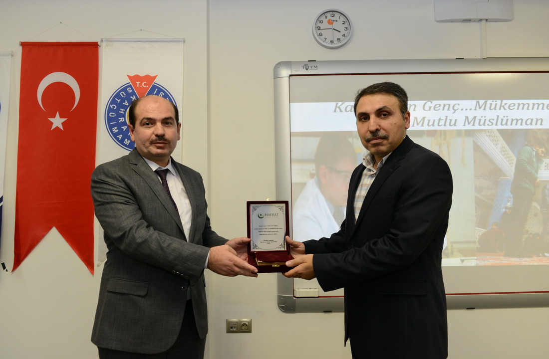 Konferans sunumunun ardından İlahiyat Fakültesi Dekanı Prof. Dr. Mehmet Akif Özdoğan tarafından Muhlis Körpe’ye çeşitli hediyeler verildi. Rehber Gençler Öğrenci Topluluğu Akademik Danışmanı Dr. Öğretim Üyesi Bülent Köstü de Dekan Özdoğan’a konferansın gerçekleştirilmesine sunduğu katkılar nedeniyle Kur’an-ı Kerim hediye etti.