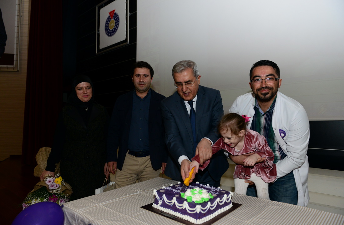 Etkinliğin son bölümünde 17 Kasım Prematüre Günü için hazırlanan pastayı Rektör Prof. Dr. Niyazi Can, Yenidoğan Yoğunbakım Ünitesinde tedavi gören 550 gram olarak dünyaya gelen Beyza Çay ile birlikte kesti.