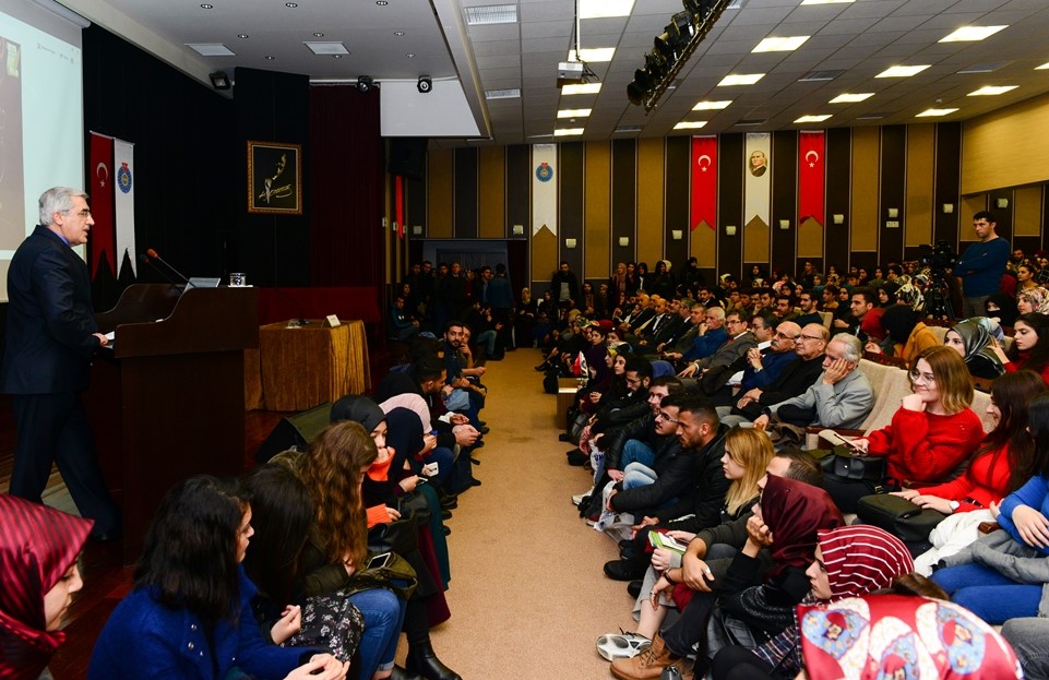 “Kariyer, ulaşılabilecek en uç noktayı hedefleyen, çalışma yaşamı boyunca kişinin kendisini sürekli geliştirdiği bir yolculuğu ifade etmektedir. Hedeflerimize ulaşabilmemiz açısından sevdiğimiz bir işi yapmamız önemlidir. Sevdiğimiz bir işi yaptığımızda, yorulmak nedir bilmeyiz ve hayatımız boyunca hobimizi yapmış oluruz.” diyen Rektör Can, “Hepimiz bir anlamda merdivenin basamaklarını tırmanmaya çalışırız. Ancak merdivenin son basamağını çıkıp, geriye bir baktığımızda, merdiveni yanlış yere dayadığımızı ve aslında çıkmak istediğimiz yerin orası olmadığını görmek, her halde hiçbirimizin istemediği bir sonuç olacaktır. Kariyer yönetimi, kariyerimizle ilgili problemler ortaya çıktıktan sonra onu çözmeye çalışmak yerine, problemleri daha ortaya çıkmadan engellemeyi hedeflemektedir.” ifadelerini kullandı.