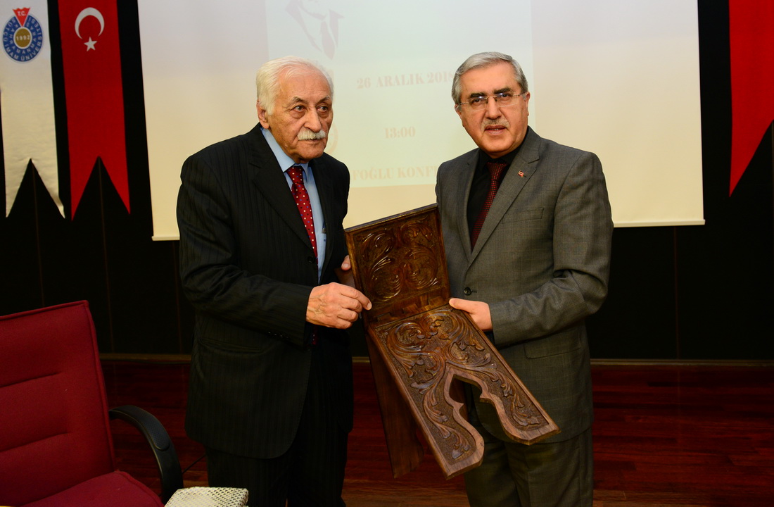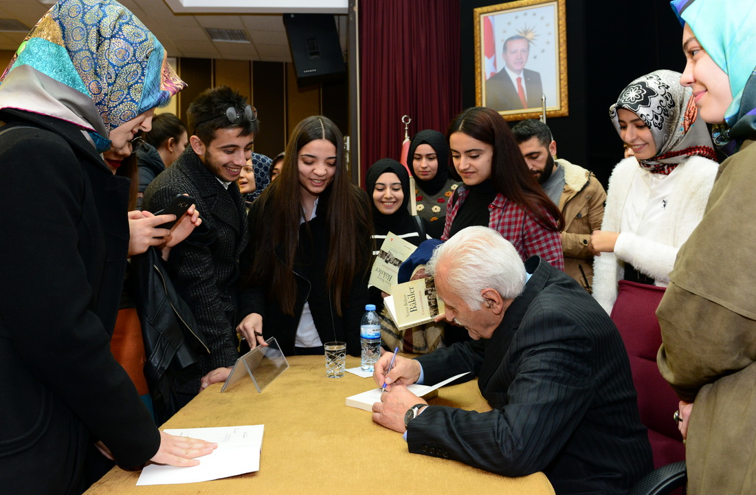 Konferans sunumunun ardından üniversitemiz Rektörü Prof. Dr. Niyazi Can, Bakiler’e Kahramanmaraş geleneksel el sanatlarından ahşap oyma rahle hediye etti. Programın son bölümünde ise Yavuz Bülent Bakiler okurları için kitaplarını imzaladı.