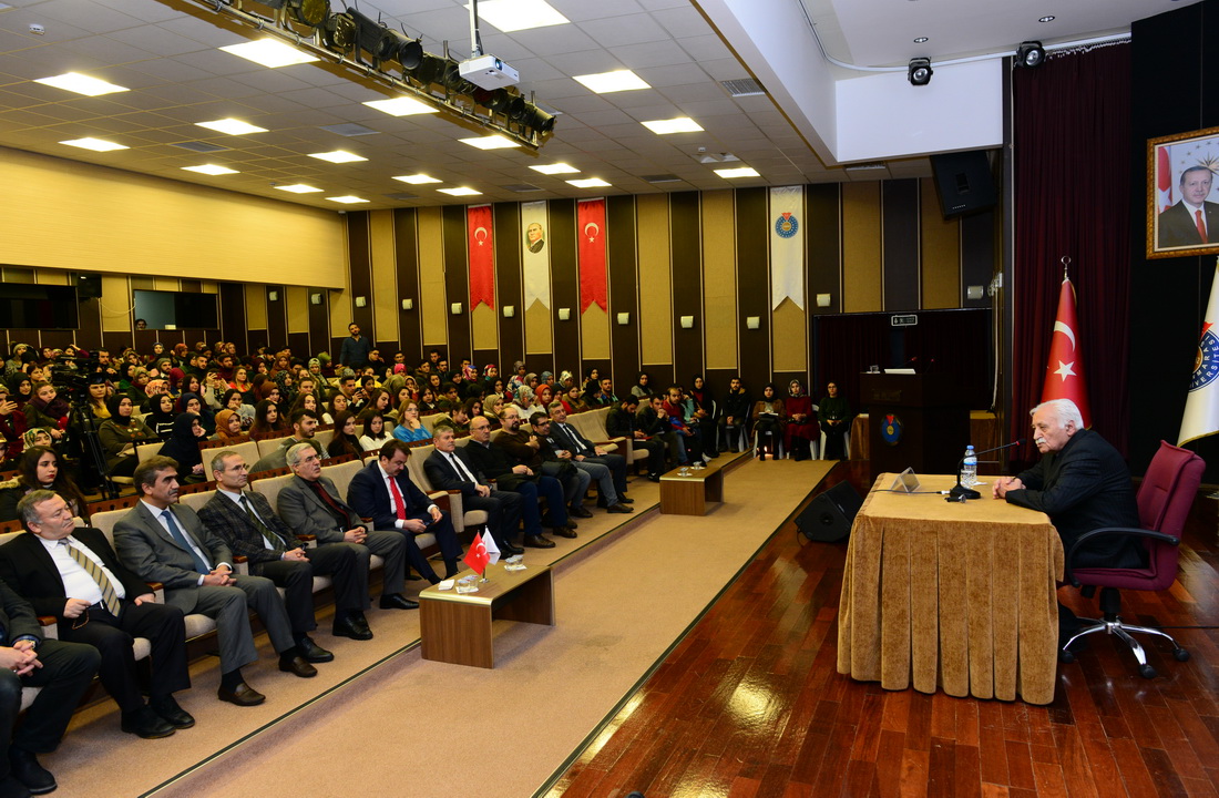 Üniversitemiz Rektörü Prof. Dr. Niyazi Can ise konuşmasına şiirleri ve eserleriyle Türk insanının kalbine taht kuran Yavuz Bülent Bakiler’i üniversitemizde ağırlamaktan duyduğu memnuniyeti dile getirerek başladı. Eserlerinde bizi, bizim insanımızı anlatan ve yansıtan Yavuz Bülent Bakiler’i okumanın ve fikirlerini anlamanın önemine vurgu yapan Rektör Can, “Hangi alanda çalışıyor olursak olalım. Hangi eğitimi alıyorsak alalım. Edebi eserlerden istifade ettiğimiz ölçüde etkili ve başarılı olabiliriz. Edebiyat ve sanat dünyamızın önemli isimlerini tanımalı, kıymetli eserlerini okumalı ve başucu kitabı yapmalıyız.” diye konuştu.