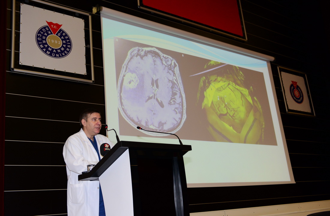 Üniversitemizde yoğun olarak beyin tümörü ameliyatlarının yapıldığını, üniversitemiz rektörlüğünün katkılarıyla oldukça gelişmiş teknolojik ekipmanlara sahip olduklarını ve yılda yaklaşık 1100 beyin ve sinir cerrahisi ameliyatı gerçekleştirdiklerini belirten KSÜ Tıp Fakültesi Beyin ve Sinir Cerrahisi Anabilim Dalı Başkanı Prof. Dr. Zafer Yüksel ise, “Beyin cerrahisinde özellikle tümör ameliyatlarında kullanılan teknoloji ne kadar yeni olursa hastalarımıza olan faydamız, elde ettiğimiz sonuçlar o kadar iyi olur. Bölümümüze kazandırılan son cihaz, yüksek teknolojili beyin cerrahisi mikroskobu. İçerdiği özel filtre sayesinde ameliyat sırasında hastaya uygulanan ilaçla tümör yoğun şekilde boyanıyor ve tümörün normal beyin dokusundan ayrılması sağlanıyor. Böylelikle hastaya en az zararı vererek en çok miktarda tümörü çıkarabiliyoruz. Bu da hastanın yaşam süresini uzatarak nörolojik defisit dediğimiz kol bacak felçleri, doku kayıpları ve bitkisel hayata girme gibi istenmeyen etkilerin ortaya çıkışını engelliyor.” dedi.