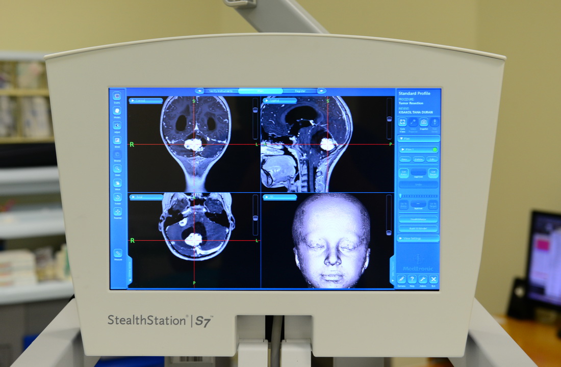 KSÜ Tıp Fakültesi Beyin ve Sinir Cerrahisi Anabilim Dalı Öğretim Üyesi Doç. Dr. İdiris Altun de özellikle beyin tümörü ameliyatlarının planlanmasına kolaylıklar sunan nöronavigasyon cihazı hakkında bilgiler verdi. Derin yerleşimli ve sıkıntılı yerlerdeki alınması zor tümörlerin derin beyin biyopsisi ile mümkün olduğunu ve bu işlemin çok az merkezde yapılabildiğini belirten Doç. Dr. Altun, “Bu işlemin yapılmasına olanak sağlayan cihazımız ise nöronavigasyon cihazı. Bu cihaz yardımıyla hastaya 1-1,5 cm kesiden girilerek en derin yerden biyopsi alınıp hastaya tanı konulmakta ve bu tanıyla birlikte tedavisi düzenlenmektedir. Bu cihaz yardımıyla trigeminal nevralji dediğimiz çok şiddetli dayanılmaz baş ağrılarında hastanın ağrılı yerinden ağrıya sebep olan sinire cihazla girilerek işlem yapılmakta, bu tür hastalarda büyük yararlar sağlanmaktadır.” dedi.