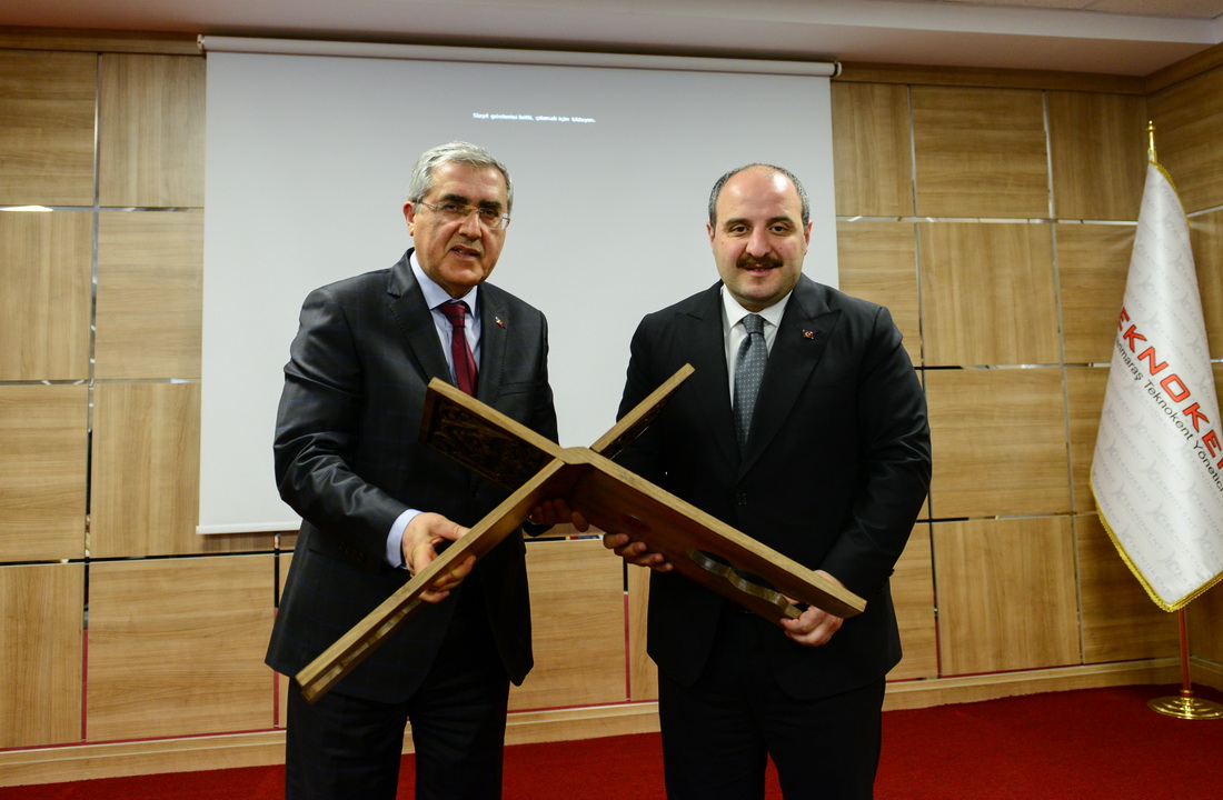 Ziyaretin anısına Üniversitemiz Rektörü Prof. Dr. Niyazi Can tarafından Sanayi ve Teknoloji Bakanı Mustafa Varank’a Kahramanmaraş geleneksel el oyması rahle takdim edildi. Ziyarette Bakan Varank’a Kahramanmaraş Valisi Vahdettin Özkan, Kahramanmaraş Milletvekili Mehmet Cihat Sezal, Kahramanmaraş Büyükşehir Belediye Başkanı Fatih Mehmet Erkoç ve il protokolü eşlik etti.