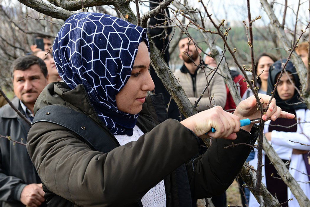 Kahramanmaraş Sütçü İmam Üniversitesi (KSÜ) Ziraat Fakültesi öğrencileri, teoride öğrendikleri bilgileri uygulamalı derslerde pratiğe döküyor. Her hafta farklı bir ünitede gerçekleştirilen uygulama eğitimleri kapsamında bu hafta Ziraat Fakültesi uygulama bahçelerinde meyve budama teknikleri gösterildi.