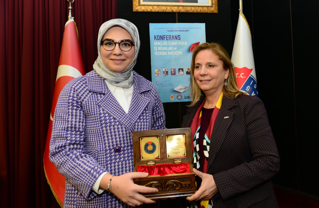 Girişimcilik serüvenlerini katılımcılarla paylaşan konuşmacılar, öğrencilerin kariyer yaşamlarına ilişkin yönelttikleri soruları da cevaplandırdılar. Panel oturumunun ardından Ak Parti Kahramanmaraş Milletvekili Habibe Öçal, Rektör Can, KMTSO Başkanı Serdar Zabun, KSÜ Rektör Yardımcıları Prof. Dr. Kadir Saltalı ve Prof. Dr. İbrahim Taner Okumuş ile Ak Parti Genel Başkan Yardımcısı Mahir Ünal’ın eşi Şule Ünal tarafından programa katkı sunan iş insanlarına çeşitli hediyeler takdim edildi.
