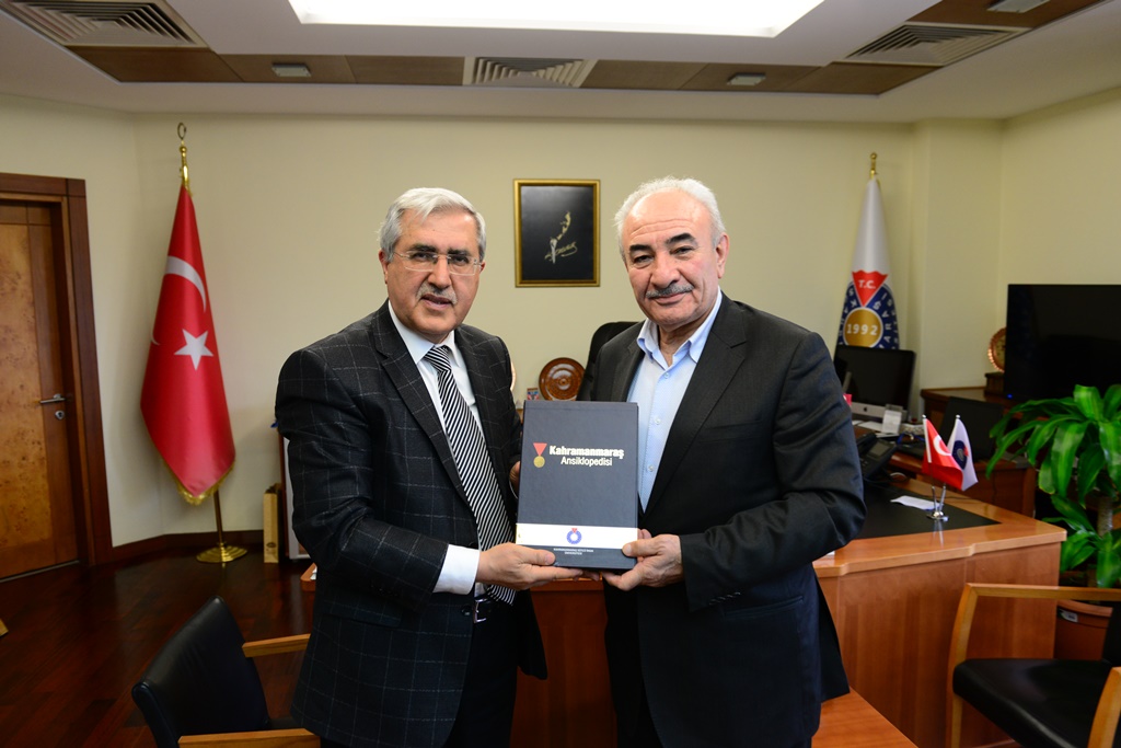 Rektör Can, ziyaretin anısına Vakkasoğlu’na KSÜ tarafından hazırlanan Kahramanmaraş Ansiklopedisi ve çeşitli hediyeler takdim etti.