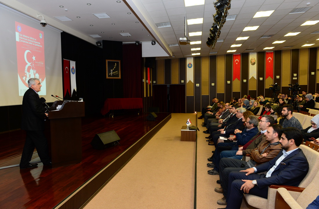 Açılış konuşmalarının ardından Gaziantep Üniversitesi Genel Sekreteri ve Eğitim Fakültesi Öğretim Üyesi Doç. Dr. Ayhan Doğan, “Türk Milletinin İstiklal ve Hâkimiyet Anlayışı Ekseninde Çanakkale Zaferi ve Şehitlerimiz” başlıklı konferans sunumunu gerçekleştirdi. “Her milletin istiklal ve istikbalinin tayininde önemli noktalar vardır.” diyen Doç. Dr. Ayhan Doğan, Çanakkale Zaferi’nin bu açıdan milletimiz için çok önemli olduğunun altını çizdi.
