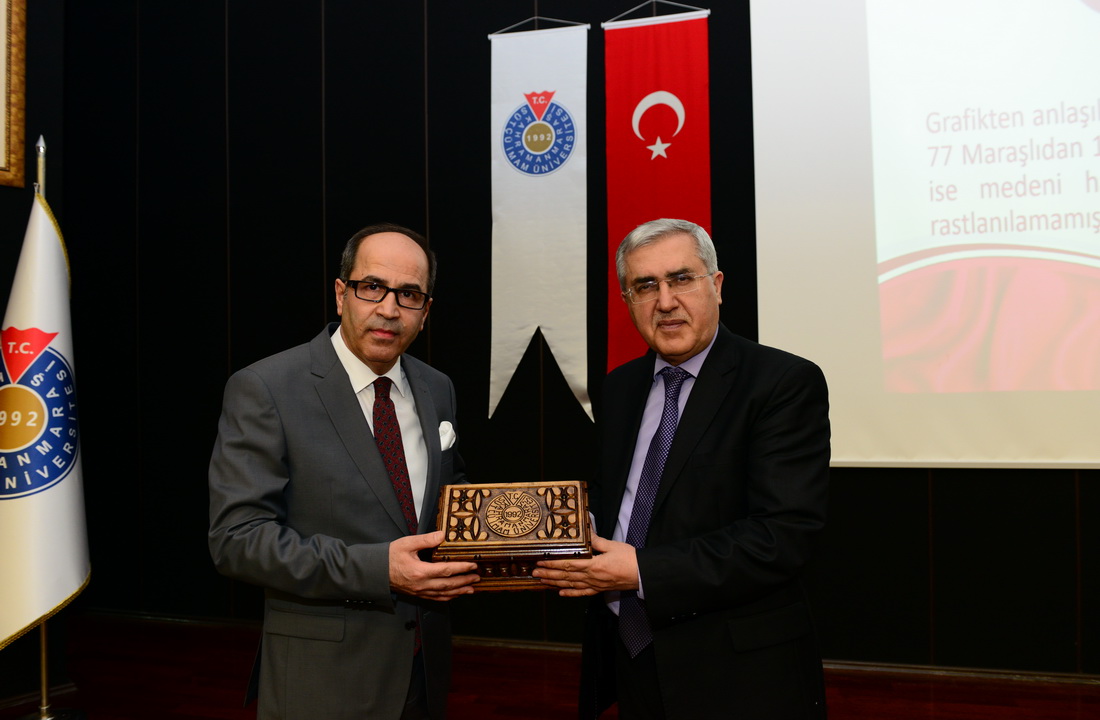 Konferans sunumunun ardından Rektör Prof. Dr. Niyazi Can tarafından Doç. Dr. Ayhan Doğan’a günün anısına hediye takdimi gerçekleştirildi.