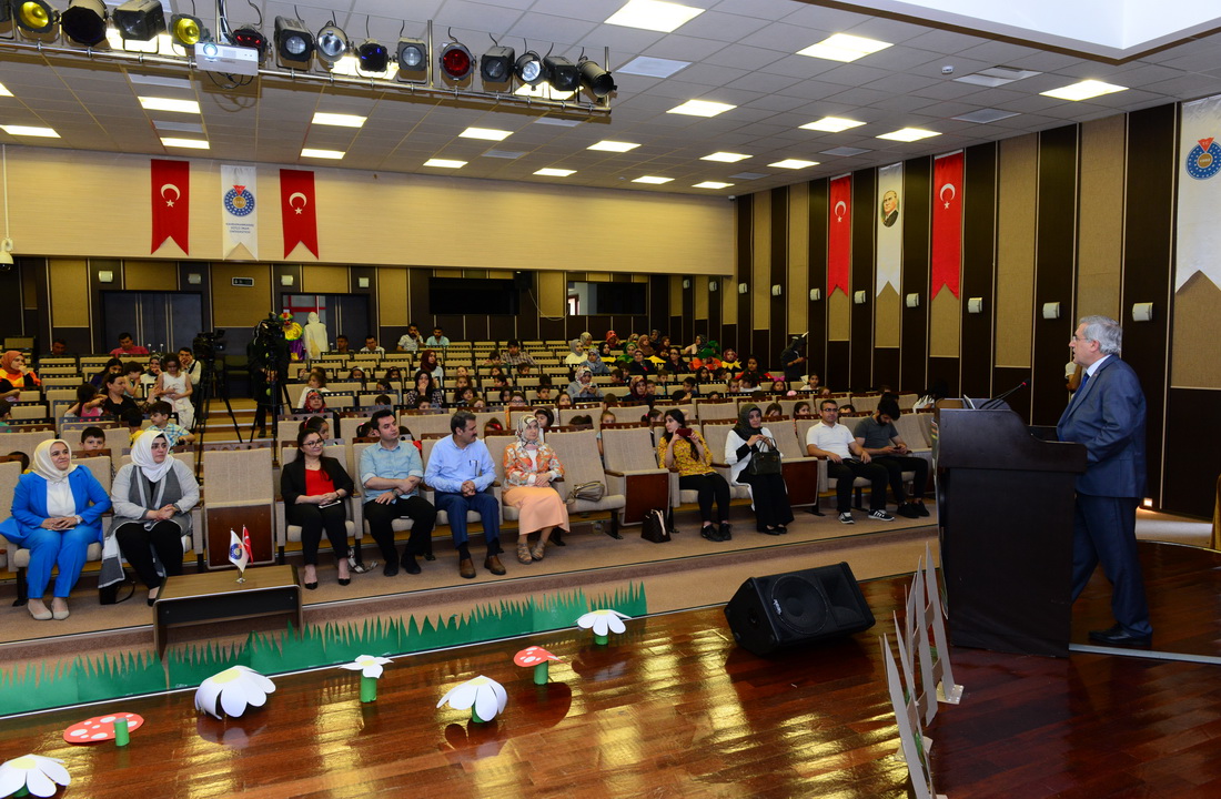 KSÜ Cahit Zarifoğlu Konferans Salonunda gerçekleştirilen Anaokulu öğrencileri ve ailelerinin katıldığı etkinliğin açılış konuşmasını üniversitemiz Rektörü Prof. Dr. Niyazi Can yaptı. Çocuk haklarını çocuklara, çocukların diliyle anlatmayı amaç edinen drama etkinliğinin önemine dikkat çeken Rektör Can, “Geleceğimizin teminatı olan çocuklarımızı sağlıklı bireyler olarak yetiştirmek bizim en temel vazifemizdir.” diye konuştu.