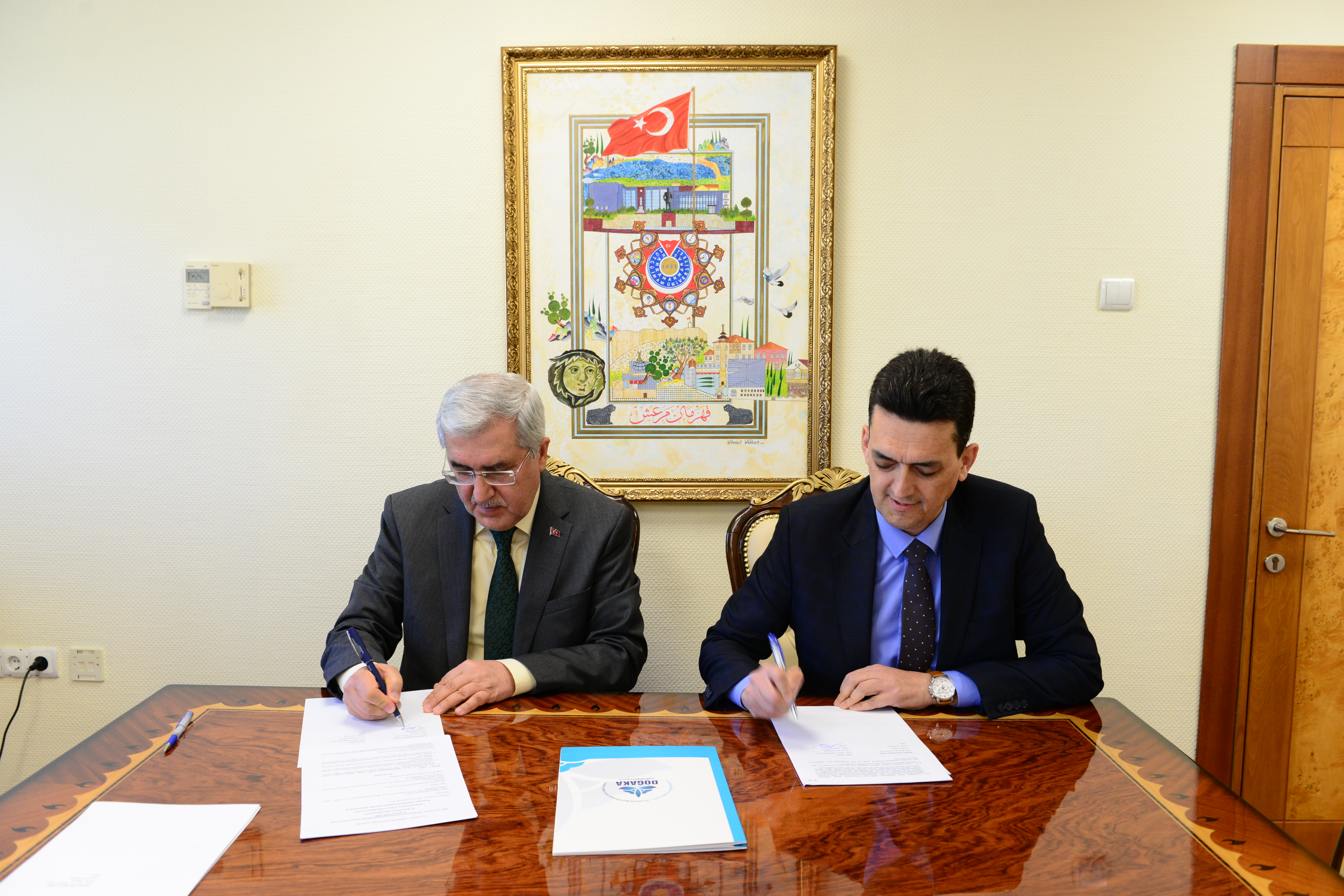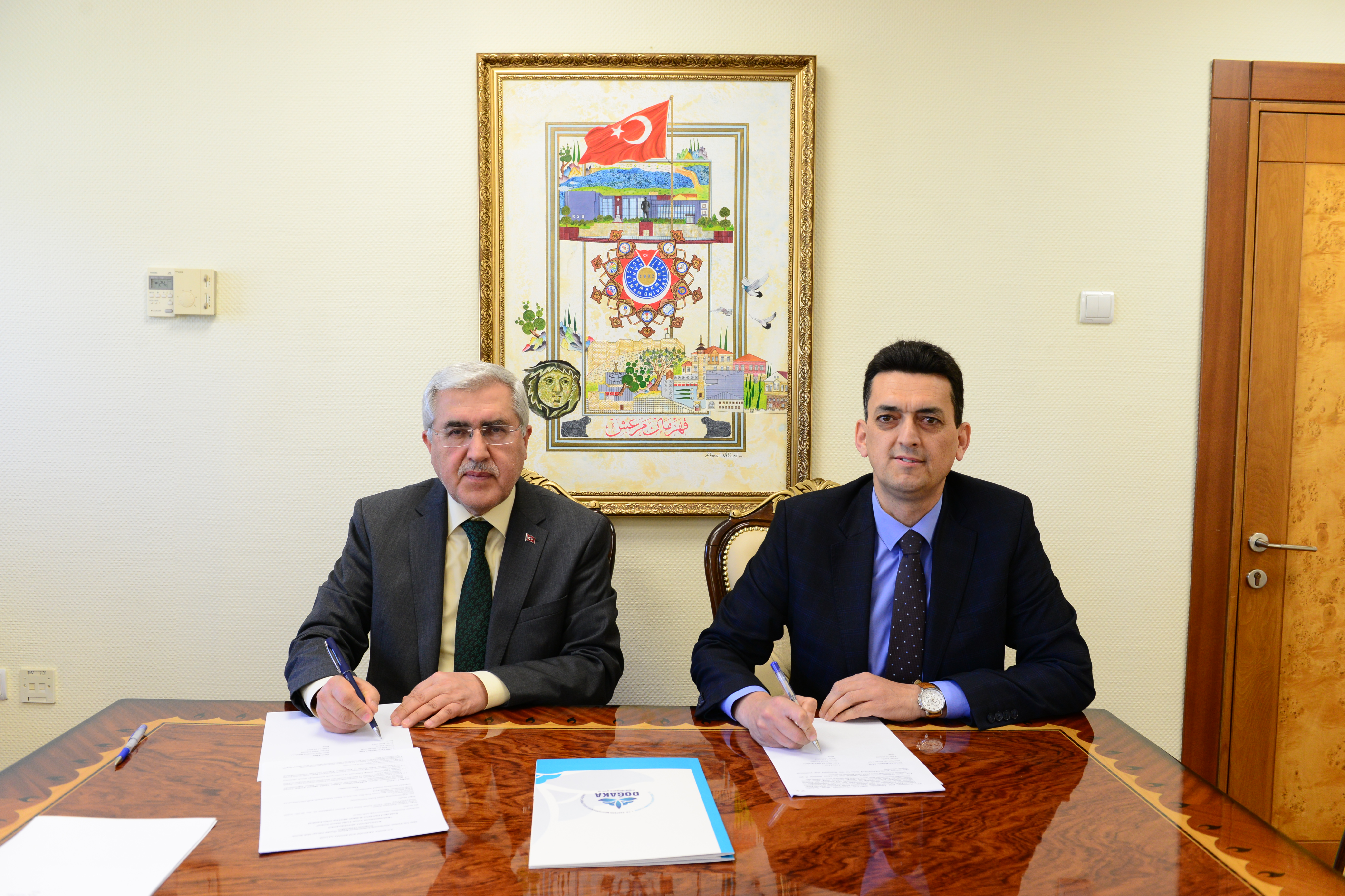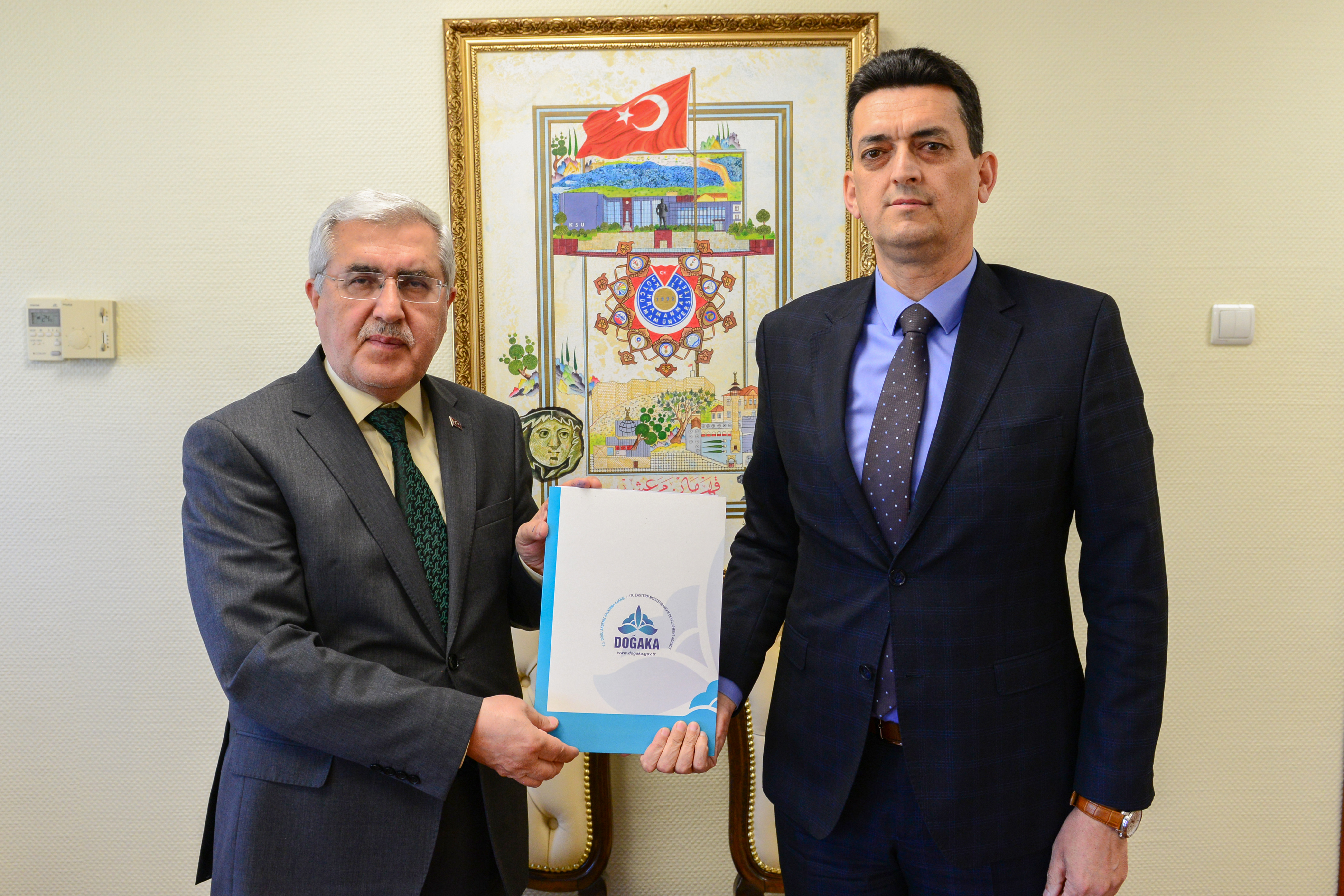KSÜ Rektörü Prof. Dr. Niyazi Can ve DOĞAKA Genel Sekteri Oğuz Alibekiroğlu’nun katılımıyla Rektörlük Makamında gerçekleştirilen imza töreninde, Rektör Yardımcısı Prof. Dr. Kadir Saltalı ve Proje Geliştirme, Koordinasyon Uygulama ve Araştırma Merkezi Müdür Yardımcıları Dr. Öğr. Üyesi Tarık Yörükoğlu ve Öğr. Gör. Tuğberk Ançel de hazır bulundular.