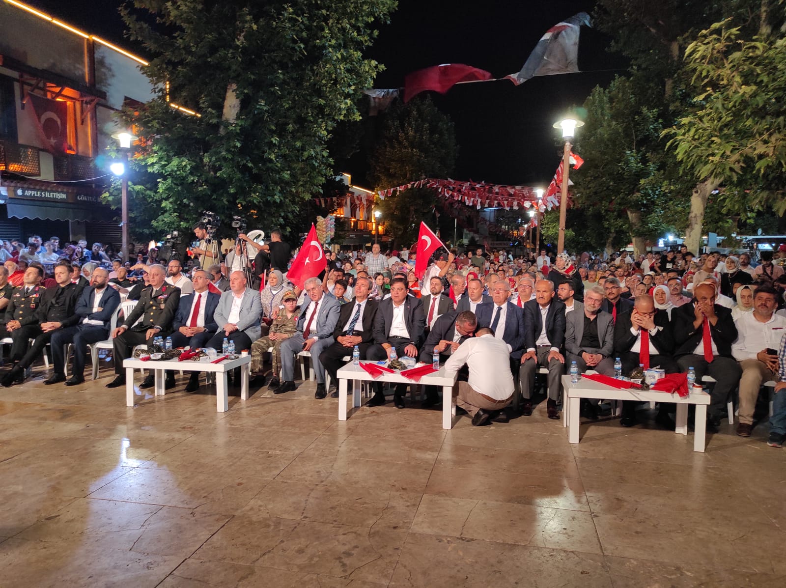 Yürüyüşün ardından başlayan “Demokrasi Nöbeti”, Demokrasi Meydanında bir dizi etkinlikle sürdü. Saygı duruşu ve İstiklal Marşının okunmasının ardından Kur’an-ı Kerim tilaveti ve aziz şehitlerimiz için dualar edildi. Protokol konuşmalarının akabinde şiir, türkü, ilahi, kaside, mehteran dinletileri ve video gösterileri ile dolu dolu geçen program tüm yurtta eş zamanlı olarak camilerde ve Demokrasi Meydanında 00.13’de sela okunmasıyla sona erdi.