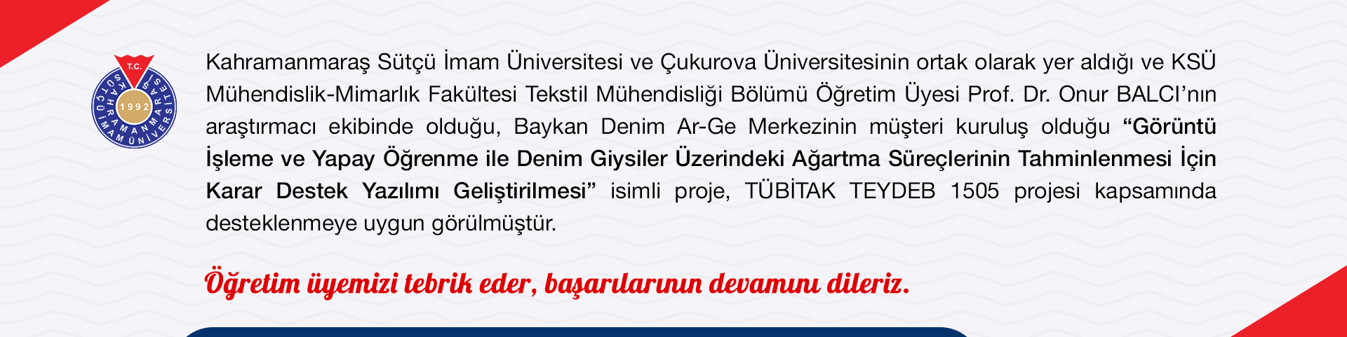 Görüntü İşleme ve Yapay Öğrenme ile Denim Giysiler Üzerindeki Ağartma Süreçlerinin Tahminlenmesi İçin Karar Destek Yazılımı Geliştirilmesi projesine TÜBİTAK'tan destek