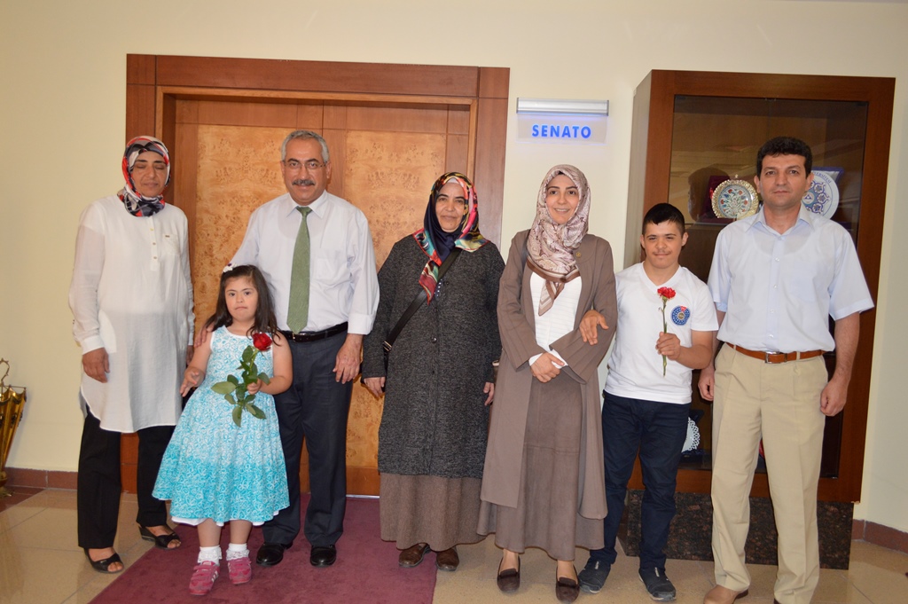 Kahramanmaraş Down Sendromu Çocukları ve Aileleri Yardımlaşma Derneği Başkanı Zeynep Nur Mahçiçek Yerhan, down sendromu çocuklar ve aileleri ile birlikte Kahramanmaraş Sütçü İmam Üniversitesi Rektörü Prof. Dr. Durmuş Deveci’yi ziyaret etti.