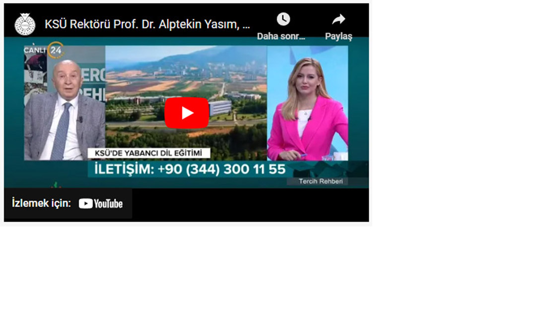 KSÜ Rektörü Prof. Dr. Alptekin Yasım’ın katıldığı ‘Tercih Rehberi’ programına aşağıdaki linkten ulaşabilirsiniz.